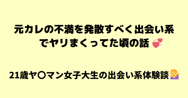 私が大学生の頃に色々な出会い系を使って多くの男性とヤリまくってた時の体験談をお話します💕